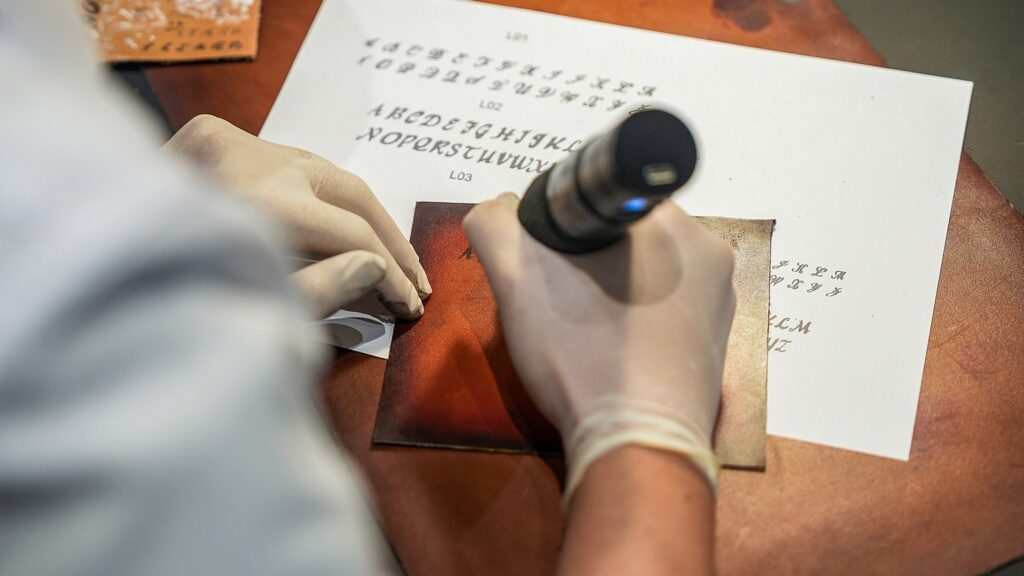Now comes the heart of the transformation: the tattooing process. Using a special ink, our tattooist begins to etch the design into the leather, point by point. Each stroke of the needle infuses the leather with pigments, creating a design that is both permanent and exquisite.