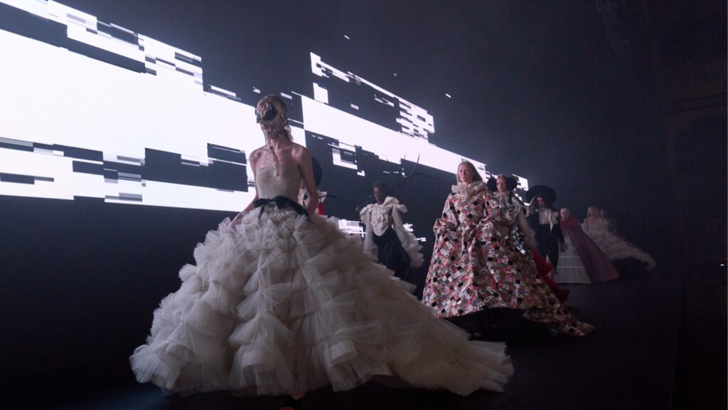 On January 29, 2025, Maison Valentino presented their Haute Couture Spring/Summer 2025 collection: VERTIGINEUX. For his haute couture debut, Creative Director Alessandro Michele brought his signature flair for drama and historical references, blending them seamlessly with the Maison’s romantic aesthetics. The collection pushed boundaries with voluminous silhouettes, intricate textures, and exaggerated details like oversized bows and pleats.