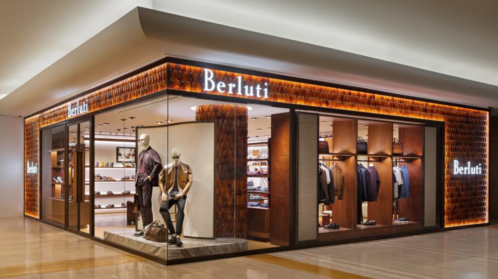 The Berluti in-store client experience offers an immersive expression of the Maison’s artisanal heritage. Clients are immersed in a world of bespoke luxury, where Berluti’s signature shoe-trying ceremony offers a deeply personalized shopping experience. The boutique also presents exclusive services such as tattoo personalization on Venezia leather and the renowned patina service, where bespoke color treatments become a personalised reflection of the client’s identity.