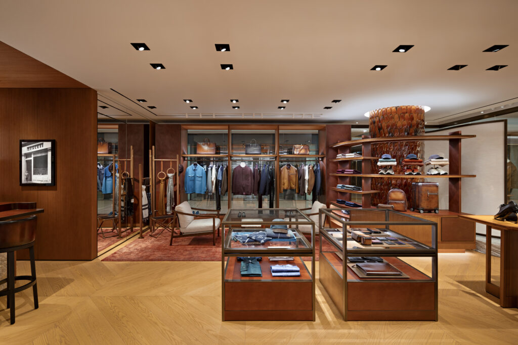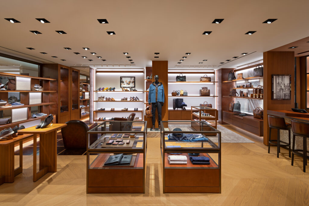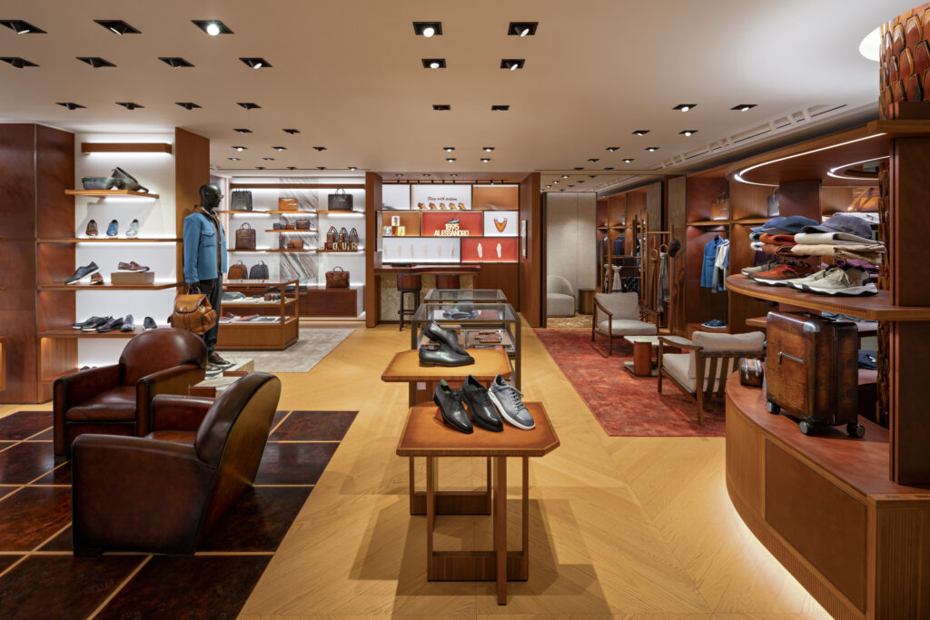 Predominantly showcasing the full spectrum of Berluti’s offerings—from shoes, bags, and small leather goods to the newly introduced ready-to-wear collection. The boutique features the latest Fall Winter collection, a patina bar, and a dedicated wall displaying Berluti’s emblematic Alessandro shoes.