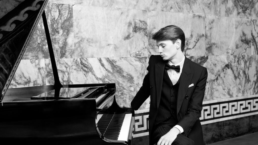 Under the black barathea wool CELINE tailcoats, lined with hand-sewn trims, the silk faille gilets are hand-embroidered in CELINE’s ateliers with “English Gothic” floral motifs composed of sequins, crystals, and high-gloss black, gold, and silver pearls.