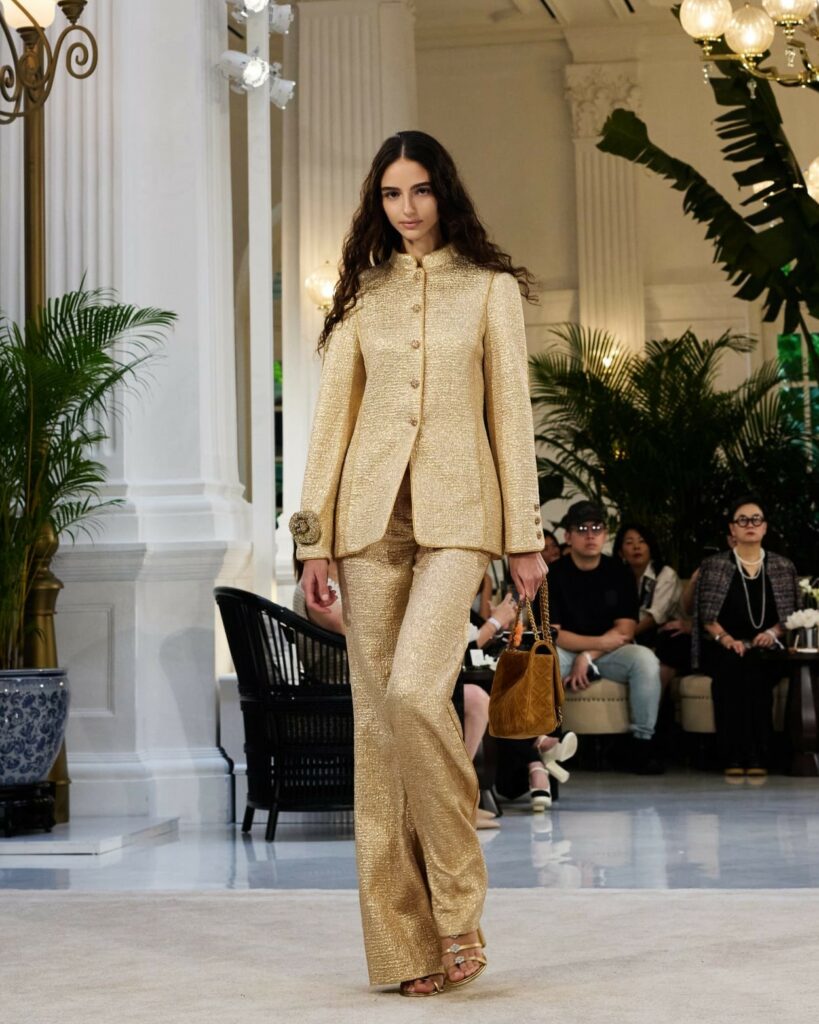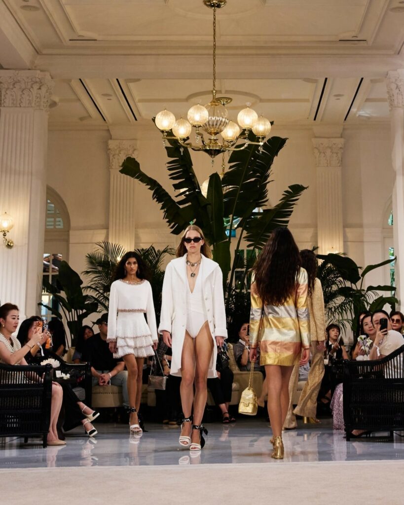 First unveiled at the renowned Villa d’Este on the shores of Lake Como on 29th April, this collection – inspired by the imagination of hotel life – found a new setting at the legendary Raffles, celebrated for its enduring spirit and elegance. These two cinematic backdrops are brought together for the show’s teaser by friend of the House, Sofia Coppola.