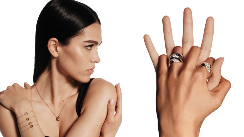 These new ruby necklaces and bracelets, along with the diamond- paved rings and bangles, enrich the collection and offer versatile styling options. This is where the strength of COCO CRUSH resides: jewelry to be worn freely, like Gabrielle Chanel, who chose her clothes and necklaces without the constraints of trends or fashions. With COCO CRUSH, jewelry adapts to every moment of life. A playful accumulation of bracelets mixing gold colours, different size rings on the fingers and hoop earrings as beautiful when worn alone or arranged as earcuffs.