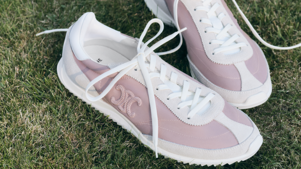CELINE enriches its shoe collection with the new “RACER” sneaker. Reminiscent of an athletic 70’s aesthetic, lightness and comfort are key, with the combination of nylon, suede and leather. The iconic “Triomphe” signature is visible, embroidered on the side and debossed on the back.