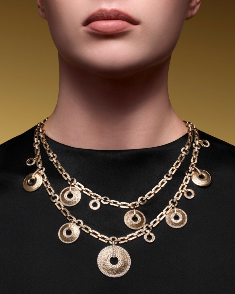 At the heart of the novelties lies the “pièce de résistance”: a bold, multifaceted talisman necklace embodying Piaget’s spirit of Extraleganza – where elegance is tempered by exuberance. Channeling the solar energy of the sun, it glows with 8 carats of diamonds set within an intricate composition of medallions, rarefied in an interplay of shapes and chain links, handcrafted to bathe the wearer in light, joy, and vitality. These charismatic creations are tokens of brightness, emotion, and unapologetic individuality, marking a bold new chapter in the ever-evolving House of Gold. It’s Piaget’s savoir-faire made tangible, a reminder that gold is the language of dreams, and imagination its only limit.