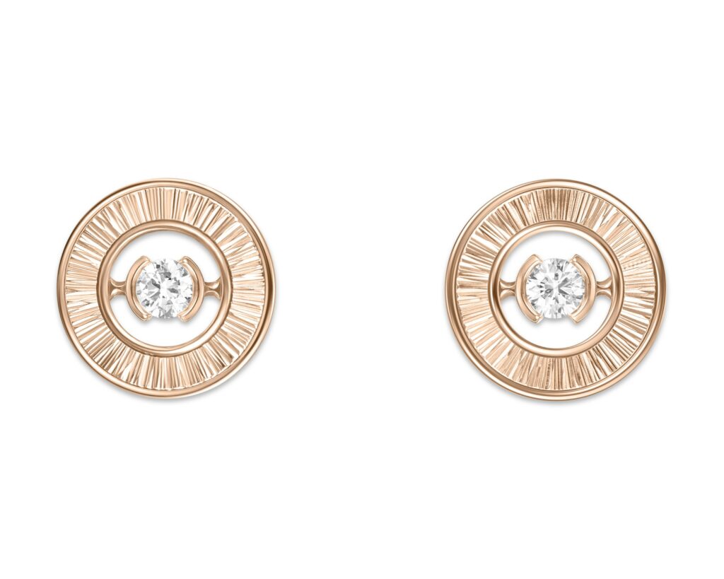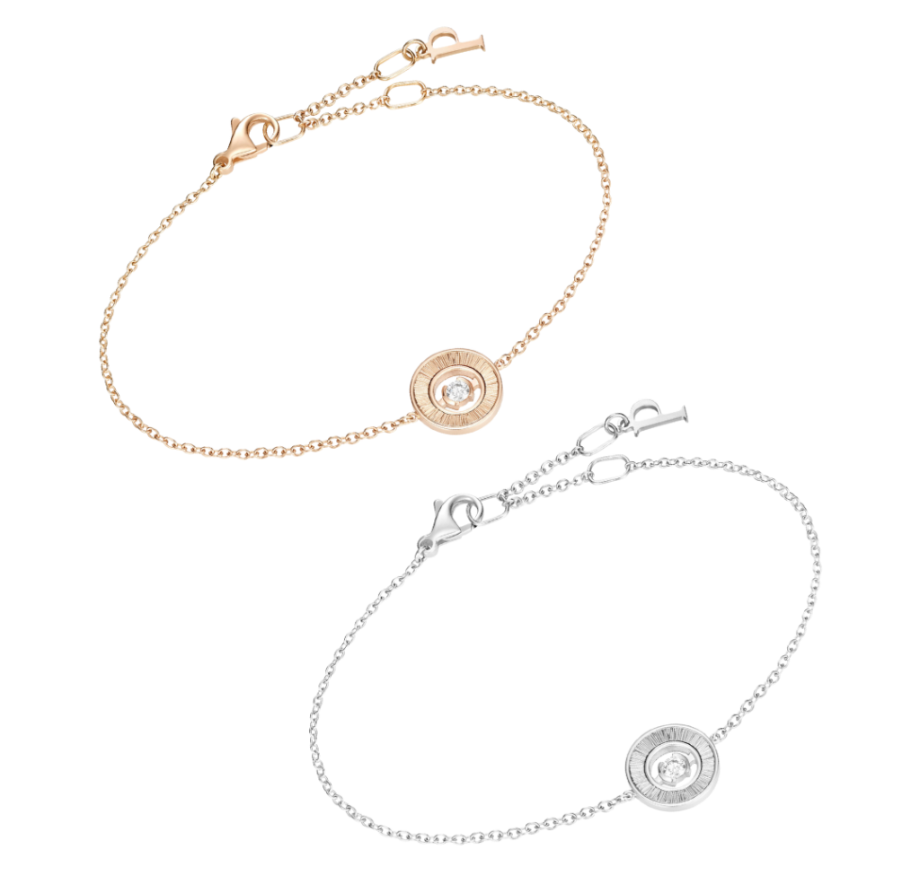 First applied on Possession in 2022, the collection continues to evolve in 2025 with Decor Palace still at its core and a fresh interpretation marked by a new round, flat aesthetic. This elegant silhouette nods to Piaget’s watchmaking roots while offering everyday wearability – jewellery that feels like a second skin. Available in small, medium, and large sizes, the new creations move with fluid grace, adapting effortlessly to personal style. Two smaller, more refined pendants showcase the signature Decor Palace engraving in rose or white gold, each set with a brilliant-cut diamond cradled between sculptural brackets and paired with matching bracelets. Medium pendants feature playful contrasts, mirror-polished or diamond-set gold paired with Decor Palace textures, brought to life by a diamond-set jump ring. A larger pendant, adorned with further diamonds and a palm-mesh chain, amplifies the sophistication. Completing the collection, rose gold earrings enriched with diamonds and Decor Palace detailing bring Piaget’s soothing, sensual touch across the body.