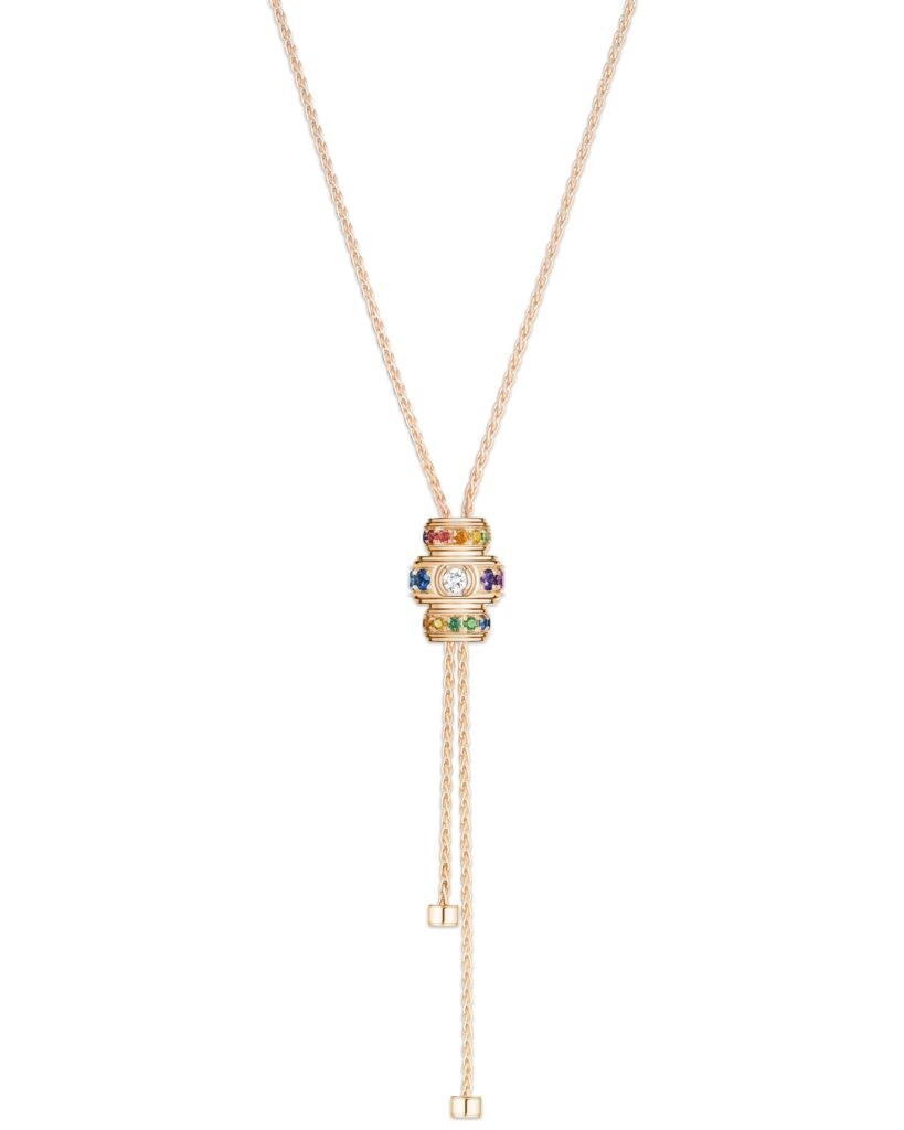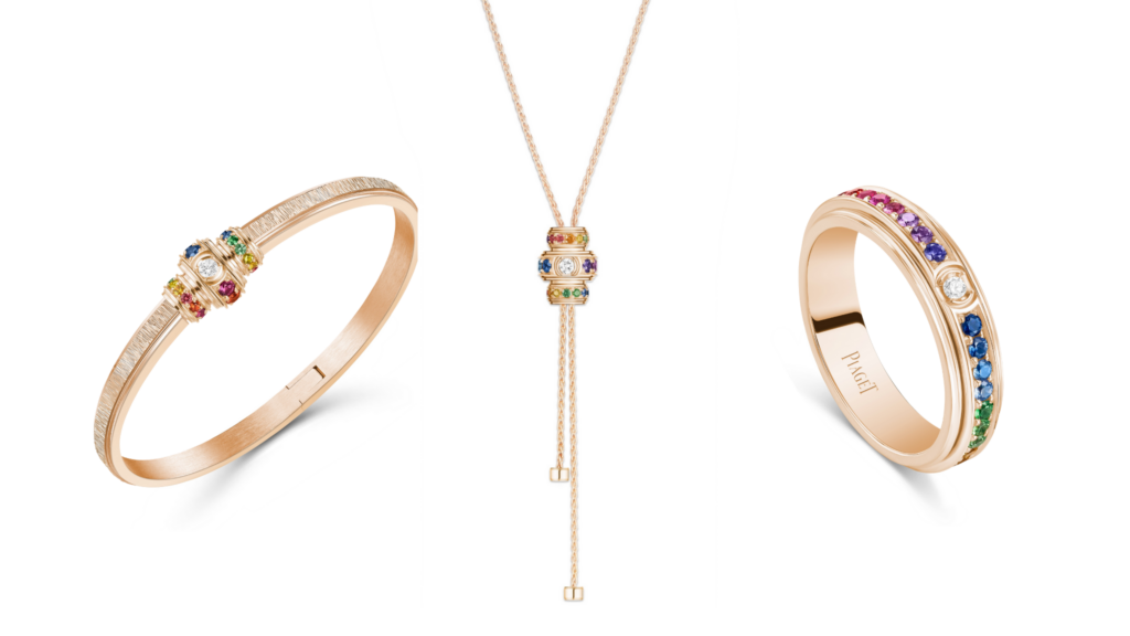 Piaget enriches its iconic Possession collection with three new Rainbow creations in the colors of the rainbow: a bracelet, a pendant, and a ring make up a playful and joyful day set. Beauty is a game.