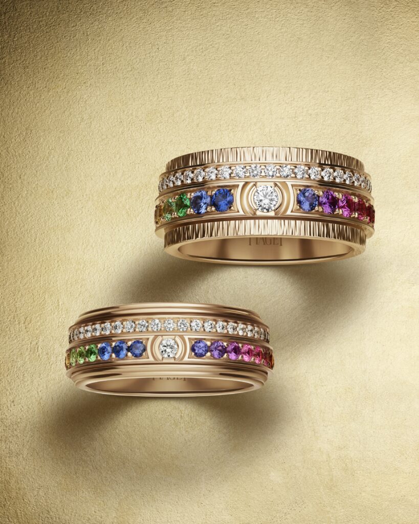 Born in 1990, the Possession collection was Piaget’s first foray into the world of everyday jewelry after decades devoted to exceptional precious pieces, oscillating with the same passion from watchmaker to jeweler at the dawn of the 1960s. Its band, beautifully nestled in a ring, inspired by the house’s watchmaking techniques, instantly seduced an audience in search of bold jewelry, as obvious as it is mysterious. A true contemporary talisman, the rotating ring invites play and constant interaction. An intuitive gesture that soothes and connects. After being adorned with the iconic gold engraving, known as Decor Palace, the Possession collection now lends itself to the changing and magnetic nuances of multicolored stones: including diamonds, pastel pink, yellow sapphires, or vibrant tsavorites. All highlighted by the delicate gold work of the Decor Palace, a unique process, a testament to the virtuoso of the Métiers d’or of the house of Piaget.