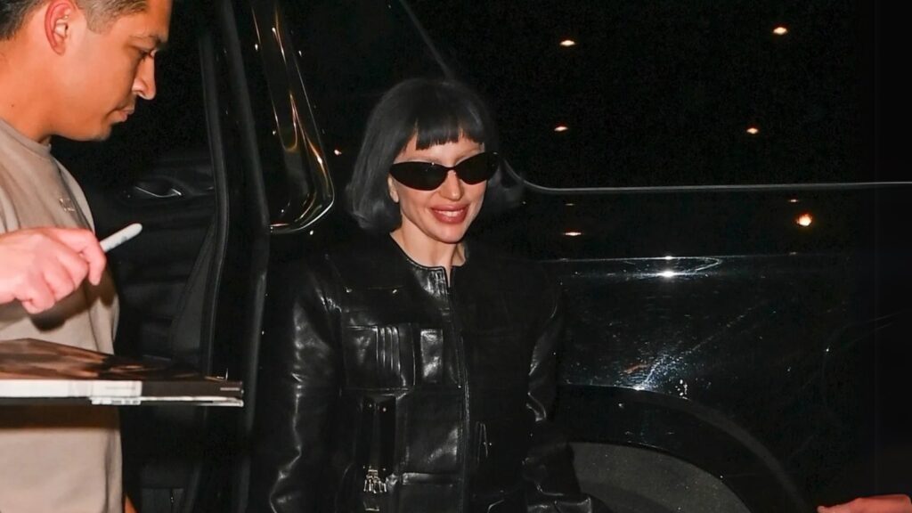 Lady Gaga made a bold statement as she left the Saturday Night Live rehearsals in head-to-toe black. The pop icon stepped out in a Tory Burch Leather Handbag Jacket from the Fall/Winter 2025 collection, redefining the modern edge. Known for her fearless approach to fashion, the Mother Monster embraced an all-black ensemble, pairing the structured jacket with a pleated mini skirt and over-the-knee leather boots.