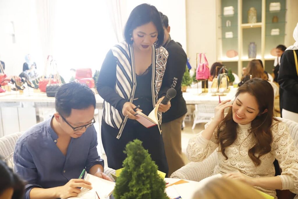 To celebrate and introduce its colourful Holiday 2019 collection, Tory Burch held a calligraphy workshop event at Peacock Lounge, Fairmont on 13 December 2019. Led by Dinda Puspitasari and hosted by High End magazine, the guests enthusiastically learned about calligraphy on greeting cards, and to discover Tory Burch’s new collection.