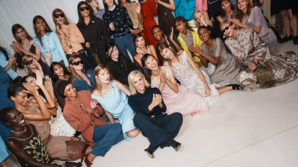 “For Spring/Summer 2026, we were thinking about the complexity of women and different facets of their style. Femininity and strength, precision and imperfection. The clash of pristine tailoring with naive florals, seed beading with distressed leather. We continued to reinterpret American sportswear, juxtaposed with touches of romance, sentimentality and craft. A piped blazer was inspired by my father, and we referenced antique samplers for monogram embroidery with our design team’s initials.”